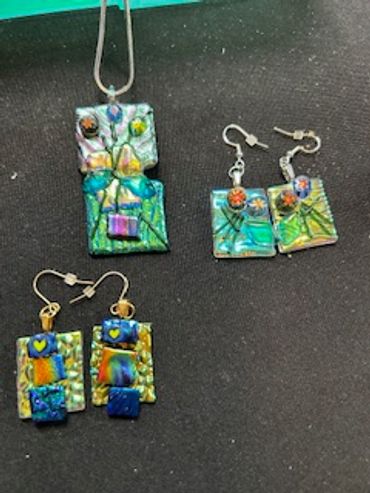 Design and craft your one-of-a-kind Fused Glass jewelry (earrings and pendant) AND Resin jewelry (earrings and pendant)! Includes fabulous Dinner and Wine. 5 hours.